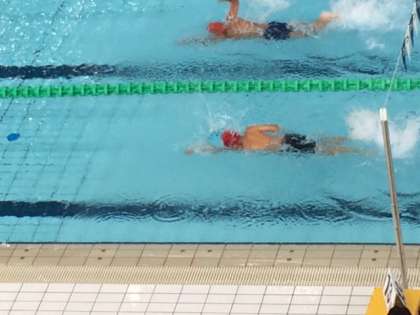 学校のプールより2倍長いのですが,スタート地点に立ったときには,ゴールがもっと遠くに見えるかも…!