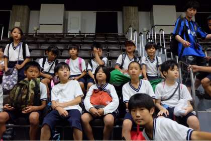 今日は,バスケットボールの全市部活動交流会の日です。会場は子ども達の熱気にあふれています。