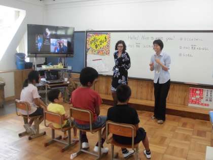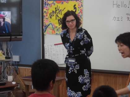 マシュー先生に代わって,8月から新しくアメリカ出身のカエミ先生にお世話になります。さっそく今日は3くみで楽しく外国語の授業を行いました。