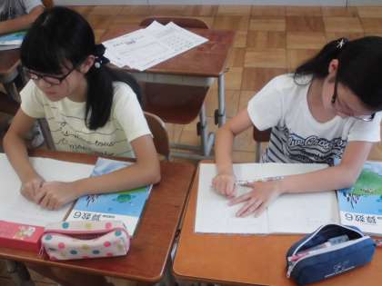 算数の時間に,「比」を学習しています。今日は,比を簡単な比にする仕方を学習していました。