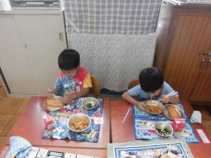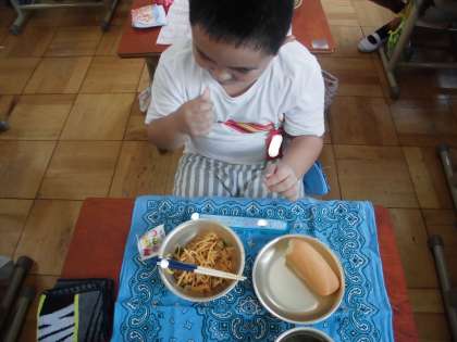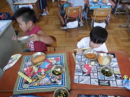 写真は,給食の様子です。「おいしい」「おいしい」を連発して食べていました。