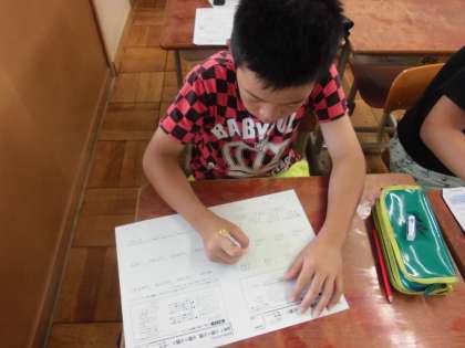 算数の時間に,「小数」を学習しています。今日は,小数のかけ算のプリントをしていました。