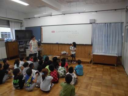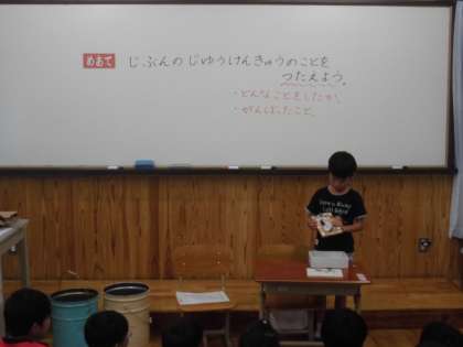 図画工作の時間に,夏休み中に作った工作の作品を発表していました。