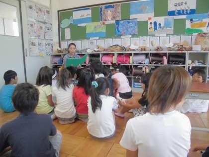 お話の場面の情景を思い浮かべながら,物語を真剣にきいていました。これから,物語の好きな場面を選び,想像を広げて絵に表していくそうです。どんな作品が出来上がるのか楽しみです。