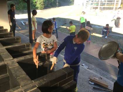 みんな協力をして一生懸命にカレーを作っています。