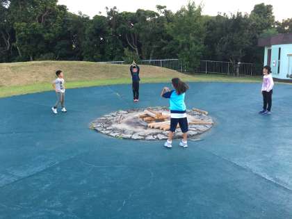 夜のキャンプファイヤーに向けて,最後の練習です。