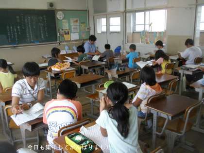 今日は,4年生が登校日,そして6年生は修学旅行の下見で担任の先生が四国・岡山へ行っているため,学習会はお休みでした。ですから5年生だけが学習会をしました。