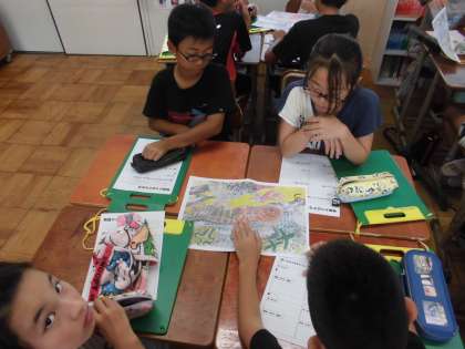 図画工作の時間に,「お話の絵」を学習しています。今日は,いろいろな作品を見てイメージを膨らませていました。