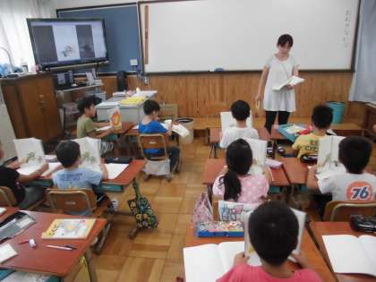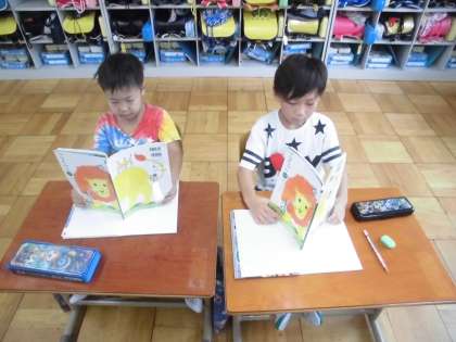 国語の時間に,「おおきなかぶ」を学習をしています。今日は,音読の練習をしていました。