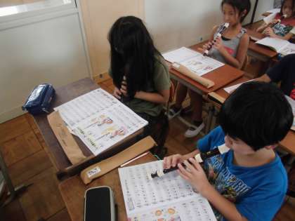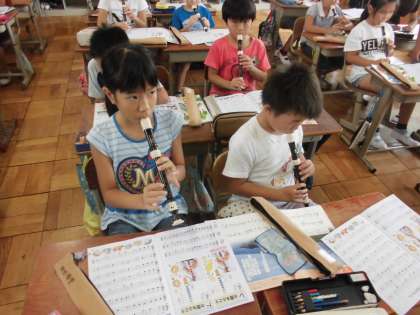 音楽の時間に,「思い出のアルバム」を学習しています。今日は,曲「思い出のアルバム」のリコーダー演奏の練習をしていました。
