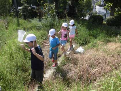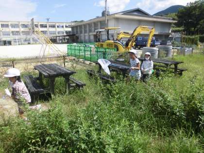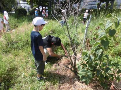 生活科の時間に,「小さななかま」を学習しています。今日は,ビオトープで昆虫探しをしていました