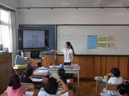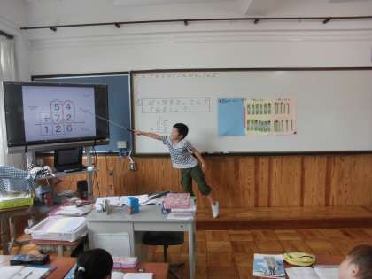 算数の時間に,「たし算とひき算のひっ算」を学習しています。今日は,ひっ算の仕方を学習していました。