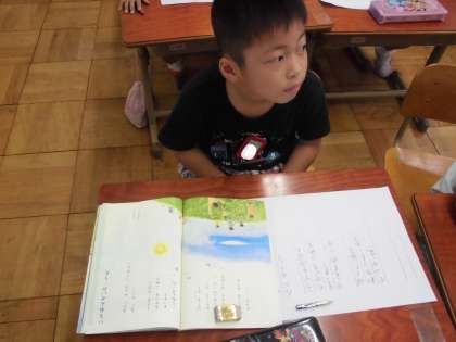 国語の時間に,「いちねんせいのうた」を学習しています。今日は,子ども達が作っている歌を仕上げていました。