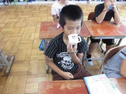 今日は,フッ化物洗口の日です。上手にブクブクうがいをしていました。