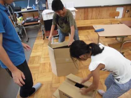 理科の時間に,「空気」について学習しています。今日は,空気ほうを作っていました。