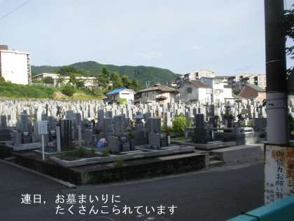 学校はお盆休みに入っていますが,学校東側に隣接している墓地は大賑わい??です。