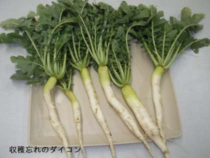 5年生の野菜畑では,収穫時期を過ぎたダイコンが残っていたので抜きました。水分不足?かしおれてしまっていましたが,おろして試食してみると激辛でした。