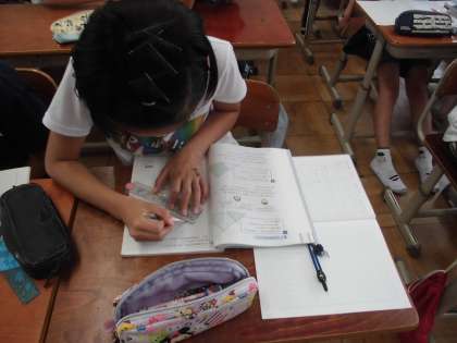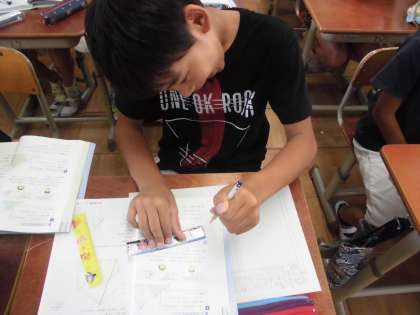 算数の時間に,「図形の拡大・縮小」を学習しています。今日は,拡大図を書く練習をしていました。