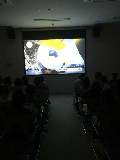 まずは映像を観て車の生産工程を学んでいます。