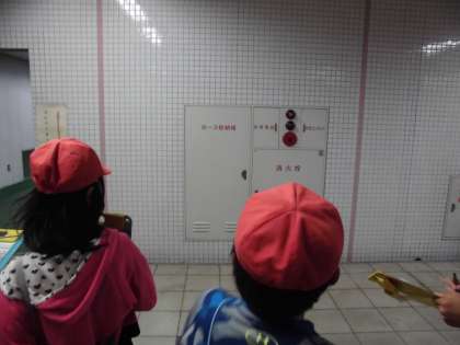 校区内にたくさんの防火設備があることに,子ども達は驚いていました。