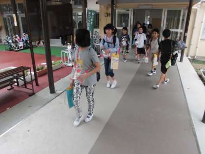5年生が社会見学から,無事に学校に戻ってきました。
