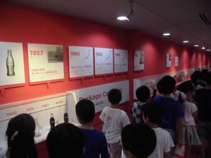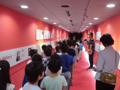 見学の初めにタイムトンネルで,製品の歴史について学習していました。