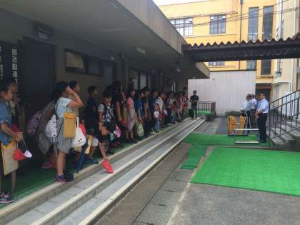 生き方探求館につきました。朝の挨拶です。