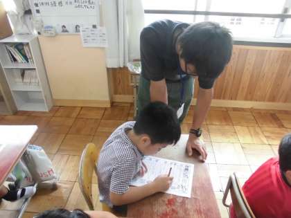 食育の時間に,「給食のマナーと栄養」について学習しています。今日は,給食クイズをしていました。