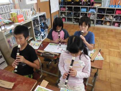 音楽の時間に,「みどりのまきば」を学習しています。今日は,「みどりのまきば」をリコーダー練習していました。