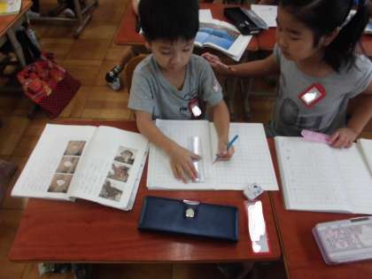 国語の時間に,「うみのかくれんぼ」を学習しています。今日は,見つけた生き物を友だちに紹介していました。