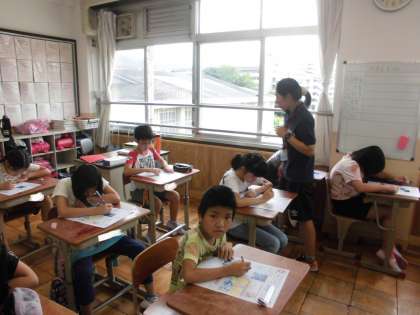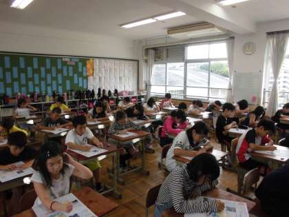 社会の時間に,「水産業のさかんな地域」を学習しています。今日は,まとめテストをしていました。