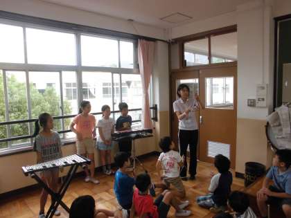 音楽の時間に,「おかしのすきなまほう使い」を学習しています。今日は,いろいろな楽器を使って演奏していました。