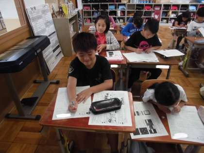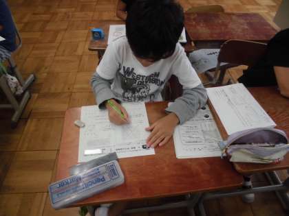 5校時にプリント学習をしていました。内容は,算数・理科・社会です。みんな集中して学習していました。