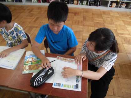 算数の時間に,「わり算」を学習しています。今日は,練習問題をしていました。