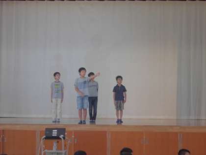終業式後に,計画委員会から今年度の運動会スローガンの発表がありました。本番も近づいてきています。素晴らしい運動会になるよう,最後の最後まであきらめず頑張ってほしいと思います。