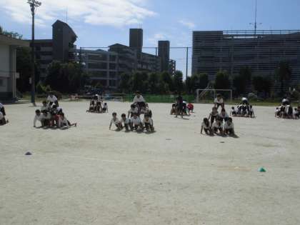 高学年が,組体操の練習をしていました。それぞれの技が完成に近づいています。