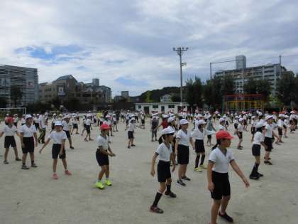 入退場の練習が,上手く出来たので全校ダンスの練習を行いました。