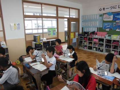 国語の時間に,「ごんぎつね」を学習しています。今日は,登場人物の心情について考えていました。