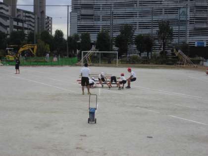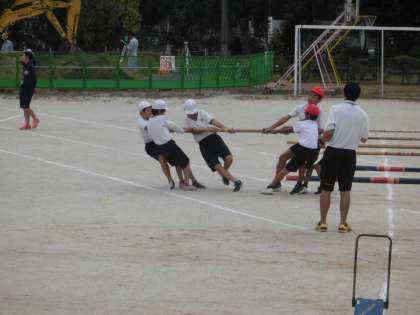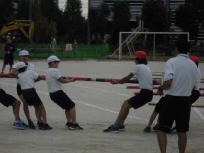 運動会に向けて,高学年が「棒引き」の練習をしていました。