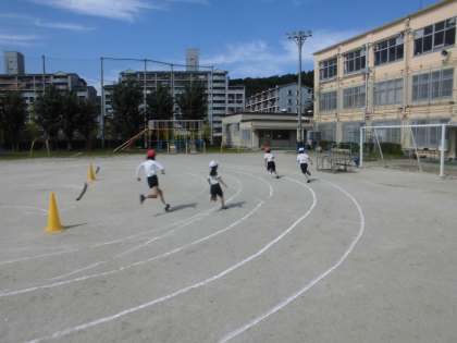 中学年が,徒競走の練習をしていました。