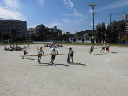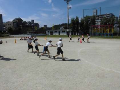 中学年が,団体競技「タイフーン〜醍醐西縦断〜」を練習していました。