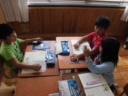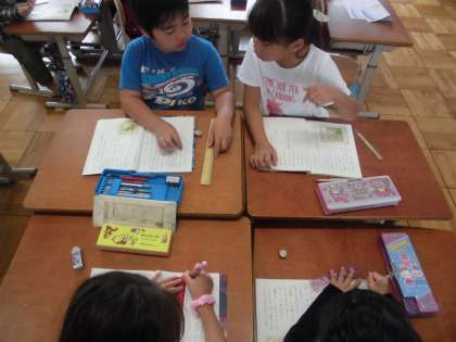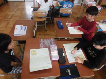 国語の時間に,「お手紙」を学習しています。今日は,音読げきについての話し合いをしていました。
