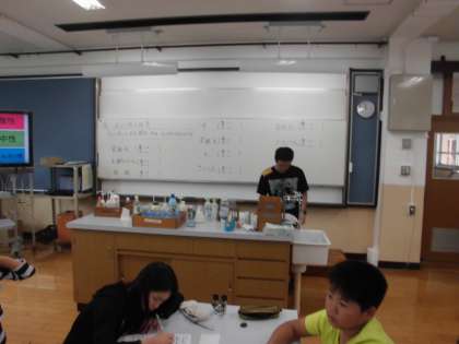 理科の時間に,「水溶液の性質」を学習しています。今日は,酸性・アルカリ性・中性について学習していました。