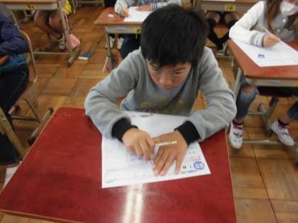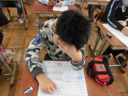 算数の時間に,「整数」を学習しています。今日は,まとめのテストをしていました。