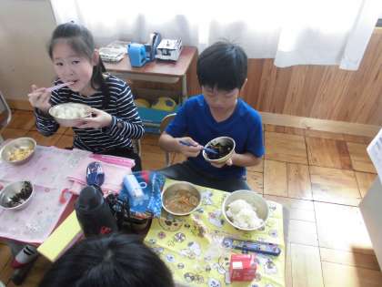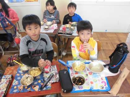 美味しそうに,給食をモリモリ食べています。もちろん,全員完食です。