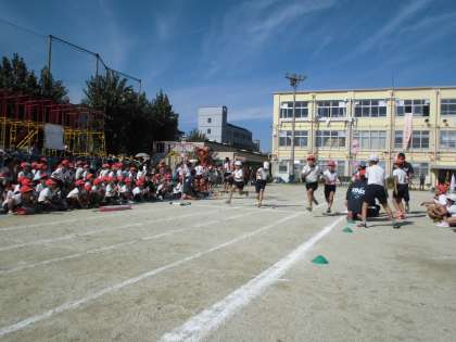 赤白対抗リレー(4〜6年生)です。