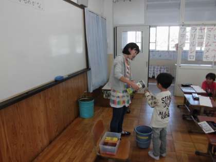算数の時間に,「かさ」を学習しています。