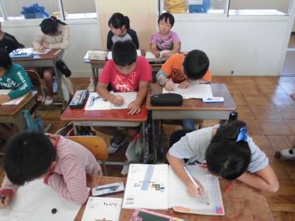 算数の時間に,「三角形」を学習しています。今日は,二等辺三角形について学習していました。