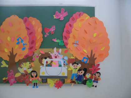 掲示板に「秋」を感じる,掲示物が掲示されていました。