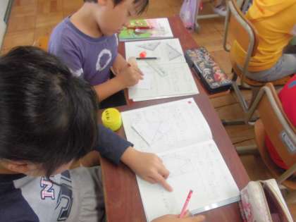 三角形の角について調べ,気付いたことをみんなで発表しました。